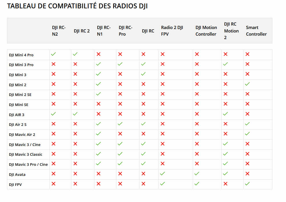 Compatibilité drones (OFFICIEL DJI)
